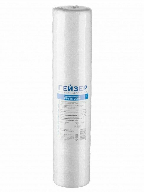 Ниже Вы можете прочитать отзывы на Гейзер Картридж PPY 25 - 20BB для механической очистки воды 28042, ознакомится с подробными характеристиками, посмотреть интересные обзоры и фотографии на Гейзер Картридж PPY 25 - 20BB для механической очистки воды 28042.