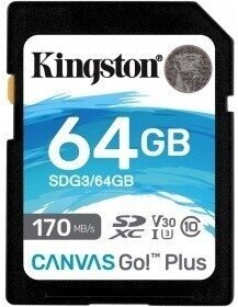 Карта памяти Kingston Canvas Go! Plus microSDXC UHS-I Cl10 +ад, SDCG3/64Gb, 1 шт.