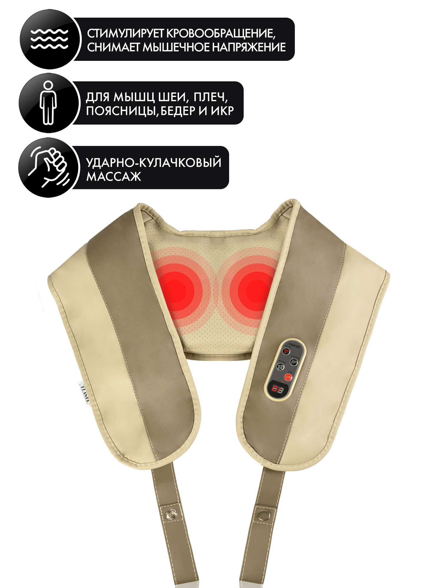 массажёр очень удобный, особенно для использования в офисе - сидя в кресле,одеваешь на шею и 10 минут (время можно настроить,как и силу удара), расслабься и наслаждайся .можно использовать в машине