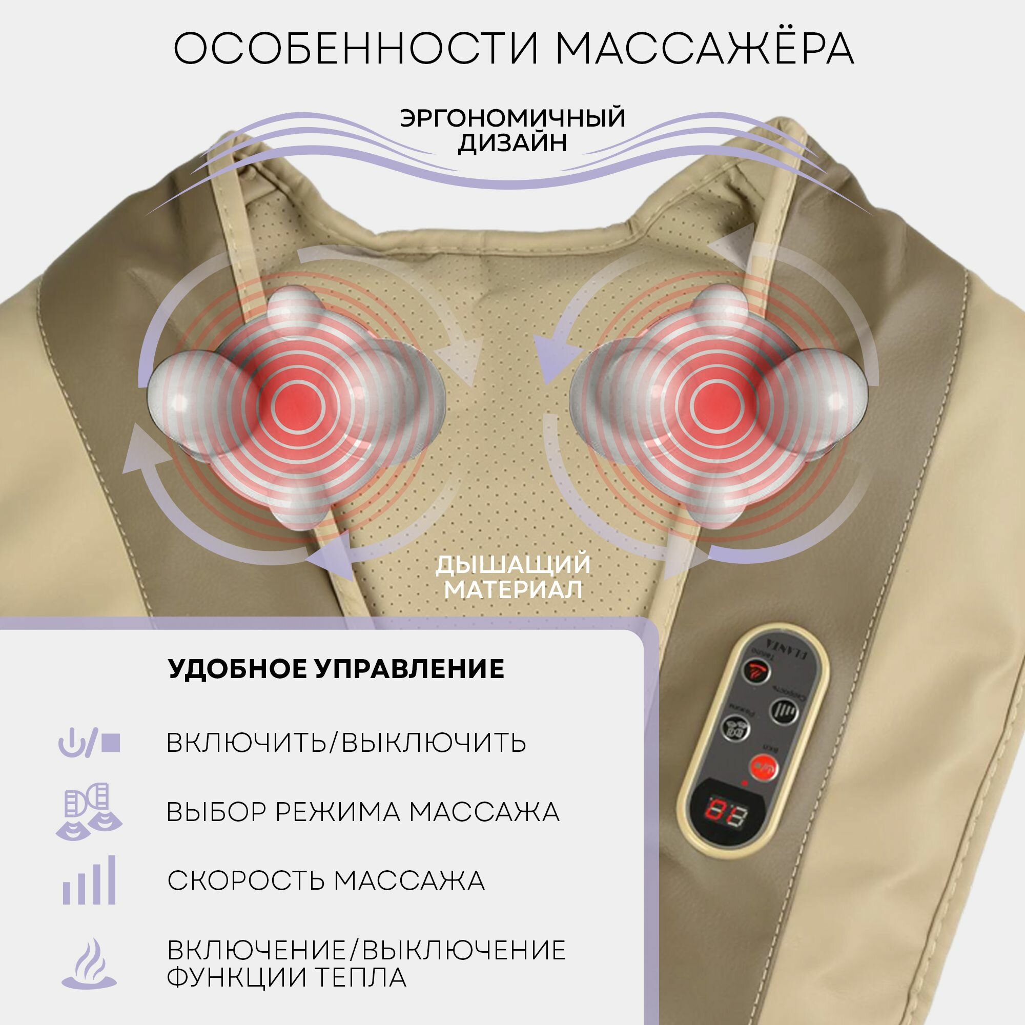 Очень облегчает шею и спину конечно. Греет,есть функция включения и выключения подогрева. На ночь делаю миновазин + массажер) на утро просто пархаю). Как альтернатива ручному массажу .