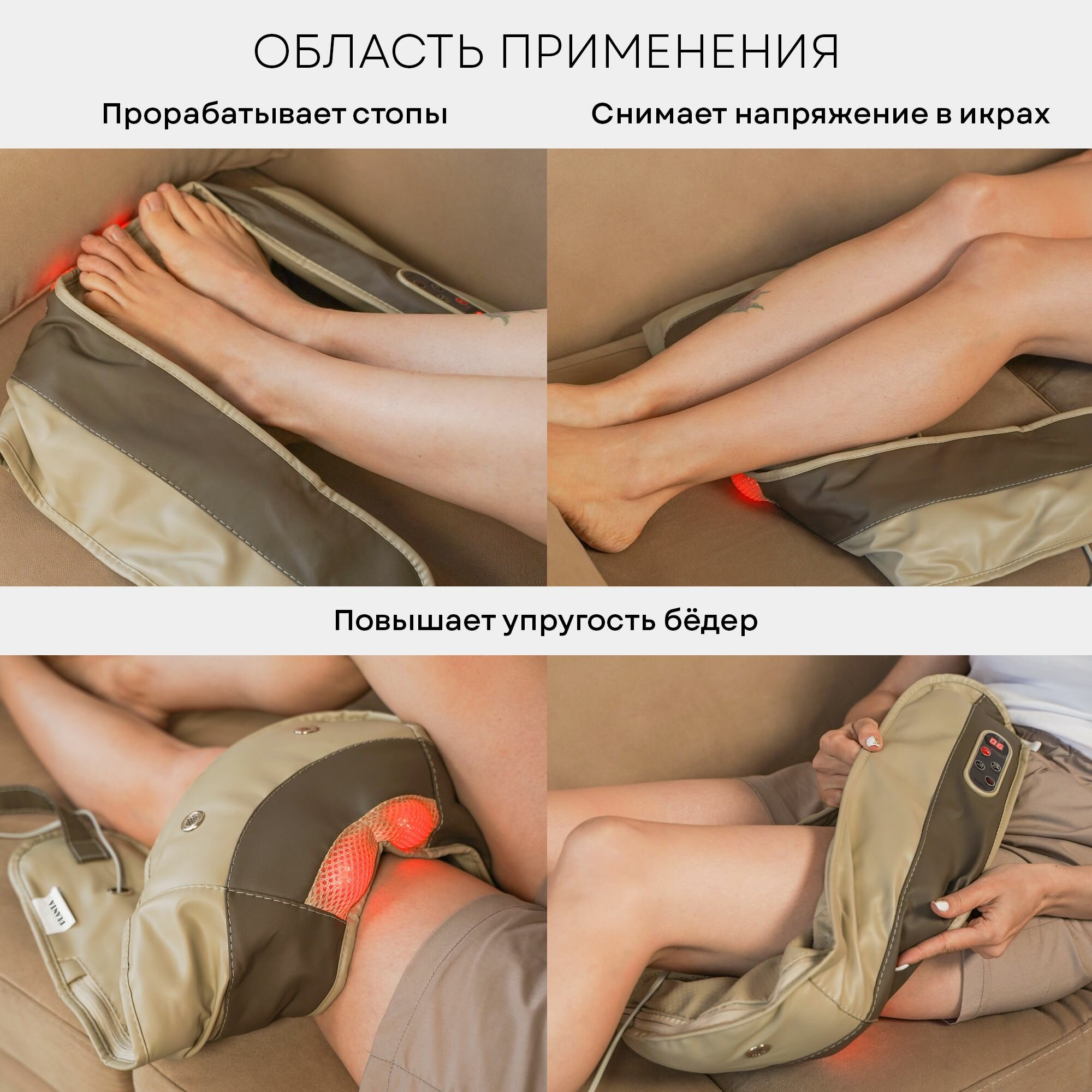 Отличный массажёр, много режимов,есть подогрев,можно менять скорость массажа,массировать можно и шейно-воротниковую зону,и поясницу,и ступни.Очень понравился всей семье.