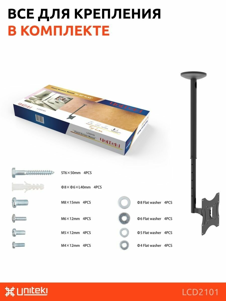 UniTeki LCD2101 черный потолочный кронштейн для диагонали 23"-43", 608-858мм