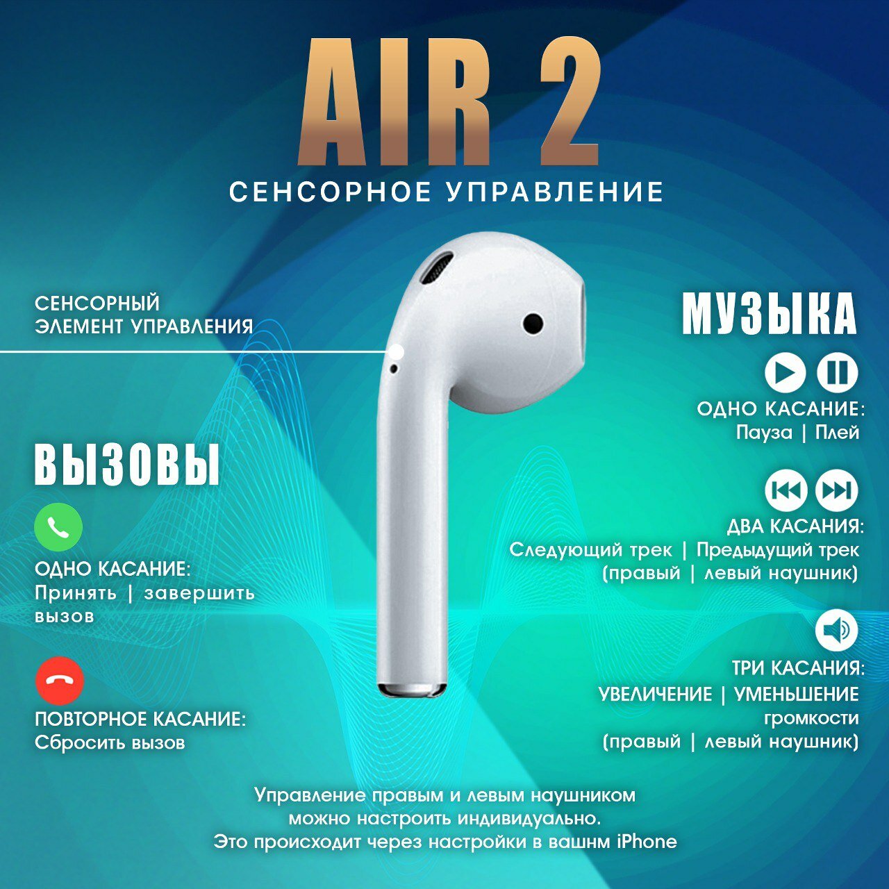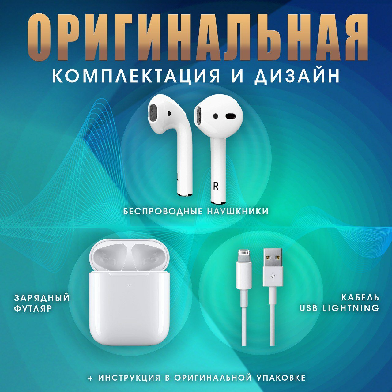 Качество звука весьма посредственное - годится только как гарнитура, т.е. только для разговора Для зарядки используется кабель Lighting, а не USB |