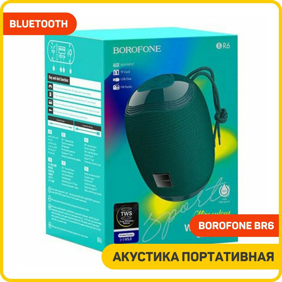 Беспроводная колонка Borofone BR6, Bluetooth, 5W, AUX, TF Card, USB, водонепроницаемый, зеленый, 1шт