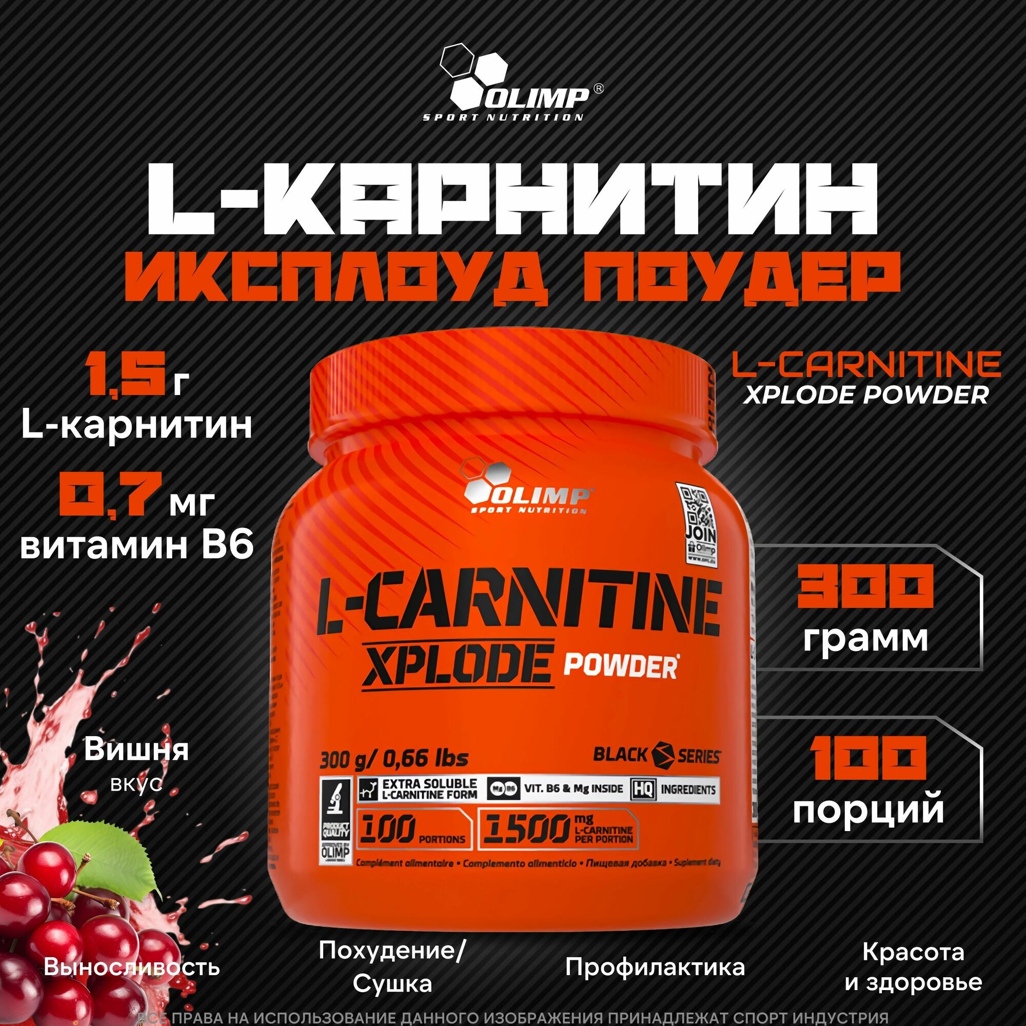 вишня Olimp L-Carnitine Xplode Powder (Л-Карнитин в Порошке) 300 г (Olimp)