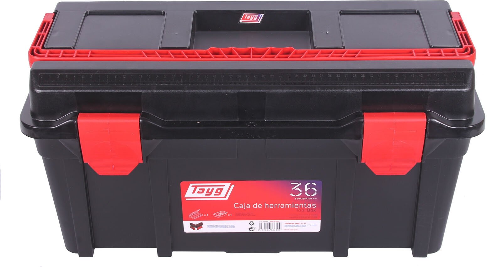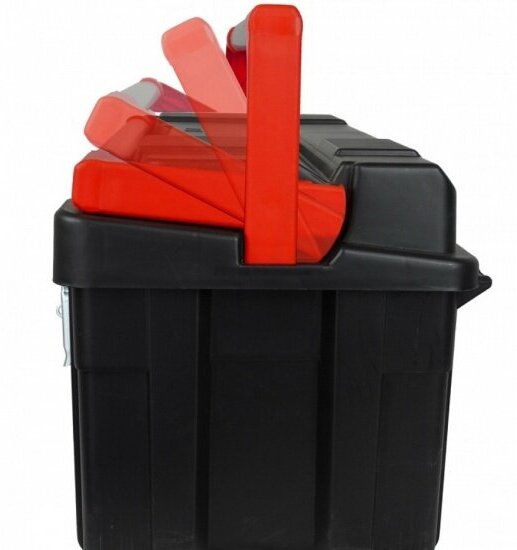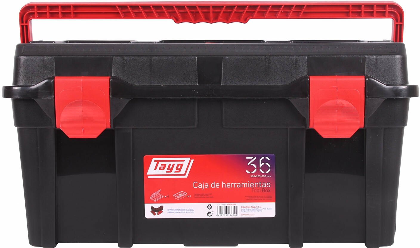 Ящик для инструмента TAYG №36, с лотком, футляром и ручкой-фиксатором, черный, 580х285х290 мм