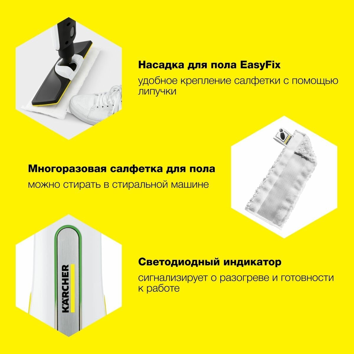 Купить Паровая электро швабра для дома Karcher SC 3 Upright EasyFix Premium 1.513-320.0 с накладкой для ковров, 3 режимами подачи пара и быстрым нагревом, белая