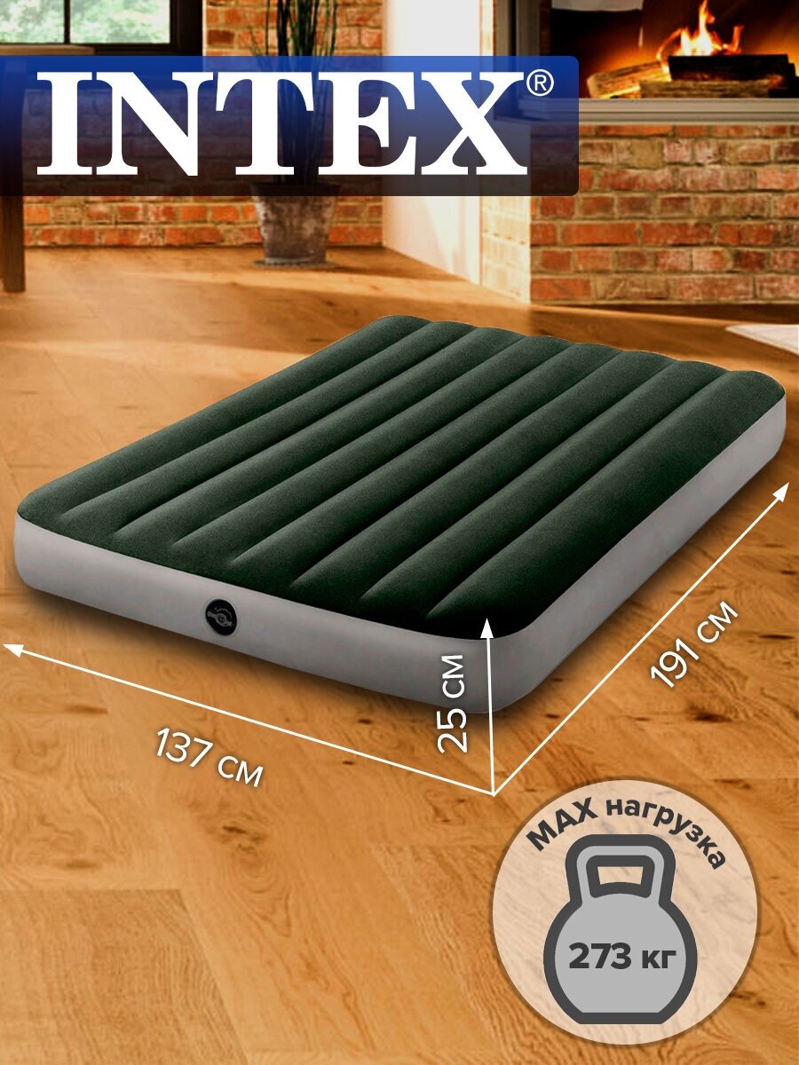 Intex Матрас надувной Dura-beam Full, 137 х 191 х 25 см, 64108 .