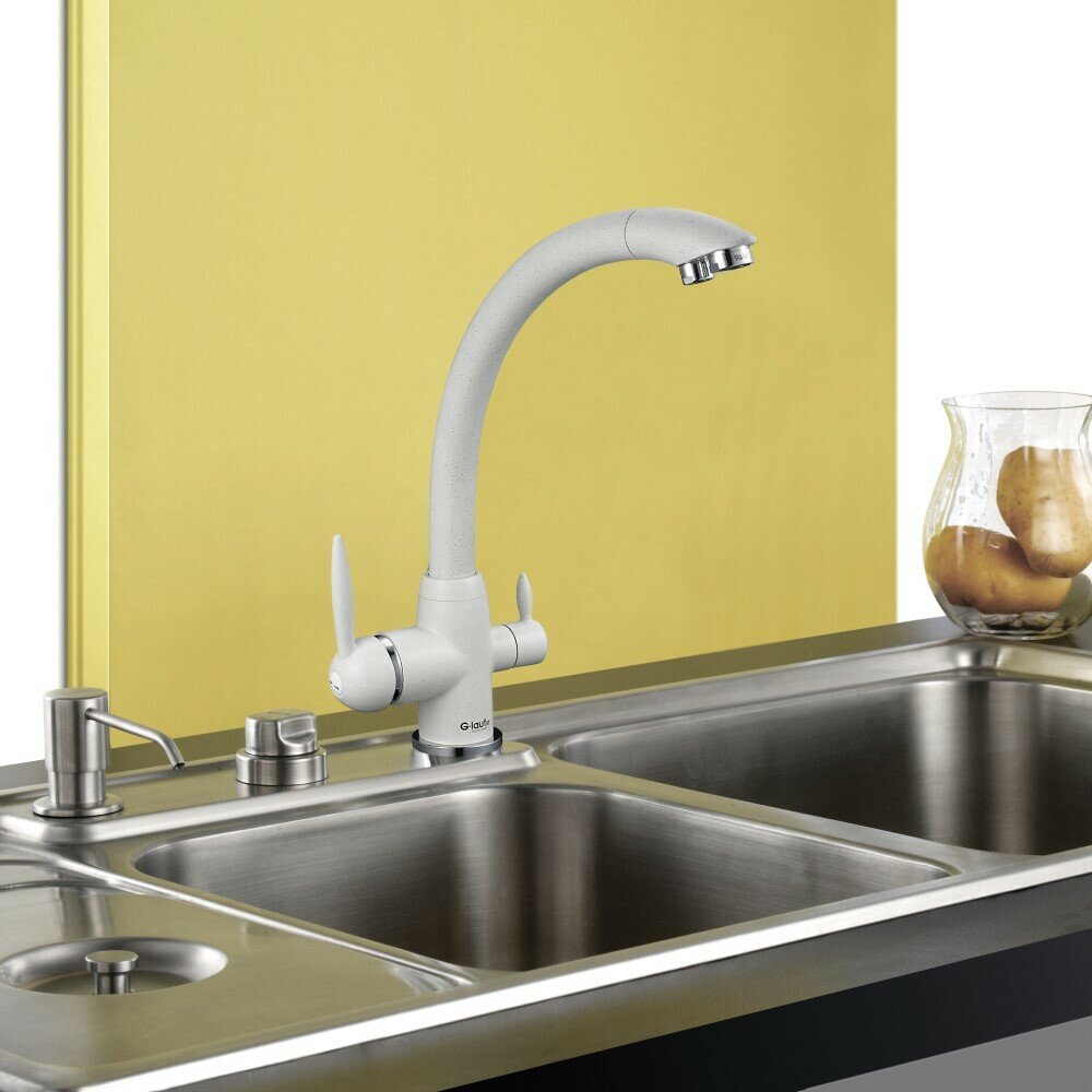Смеситель для кухни, G.lauf, с картриджем, с подключением к фильтру, белый, GOP18-A093KW