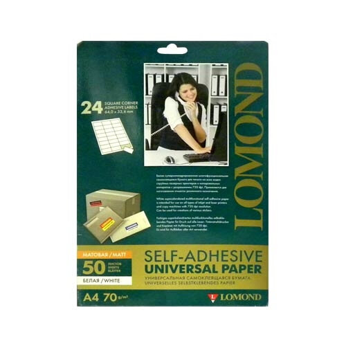 Самоклеящаяся бумага LOMOND универсальная для этикеток, A4, 24 делен. (64 x 33,4 мм), 70 г/м2, 50 л