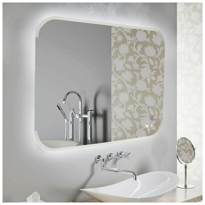 Зеркало настенное для ванной КерамаМане 70*100 см с холодной подсветкой 6000 К с сенсорной кнопкой