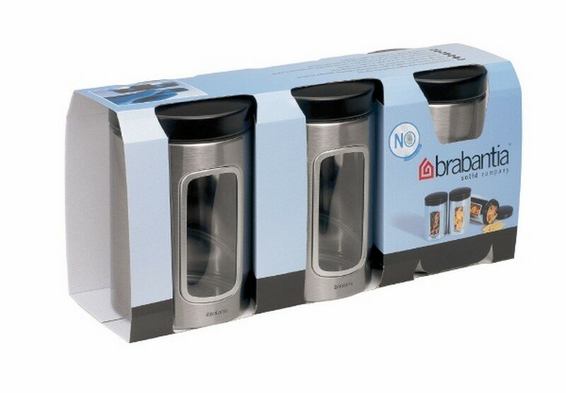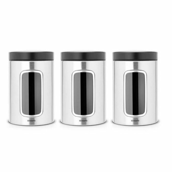 Банки для хранения продуктов Brabantia с окном 1.4л, матовая сталь, 3шт 335341
