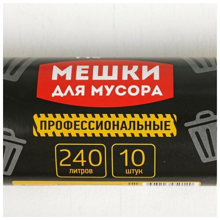 Мешки для мусора профессиональные, 240 л, 40 мкм, ПВД, 10 шт, цвет чёрный