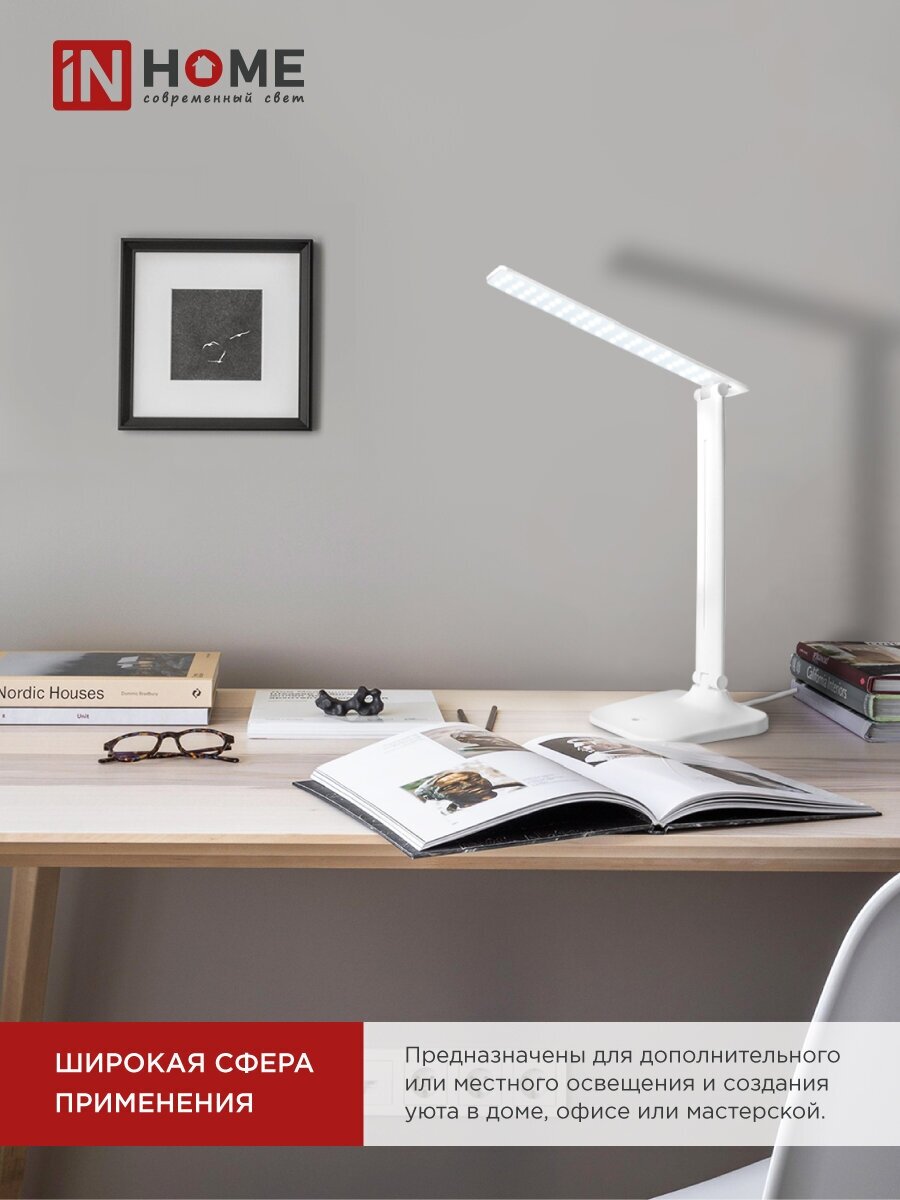 Светильник светодиодный настольный IN Home ССО 02Б 10Вт 4000К 625лм сенсор-диммер адаптер бел. 4690612013473