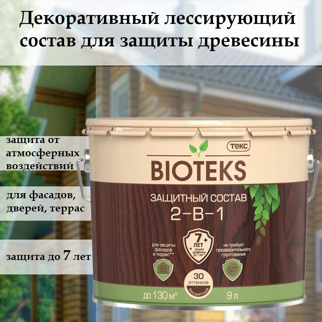 Декоративный лессирующий защитный состав 2-в-1 Bioteks для дерева Тик 9л