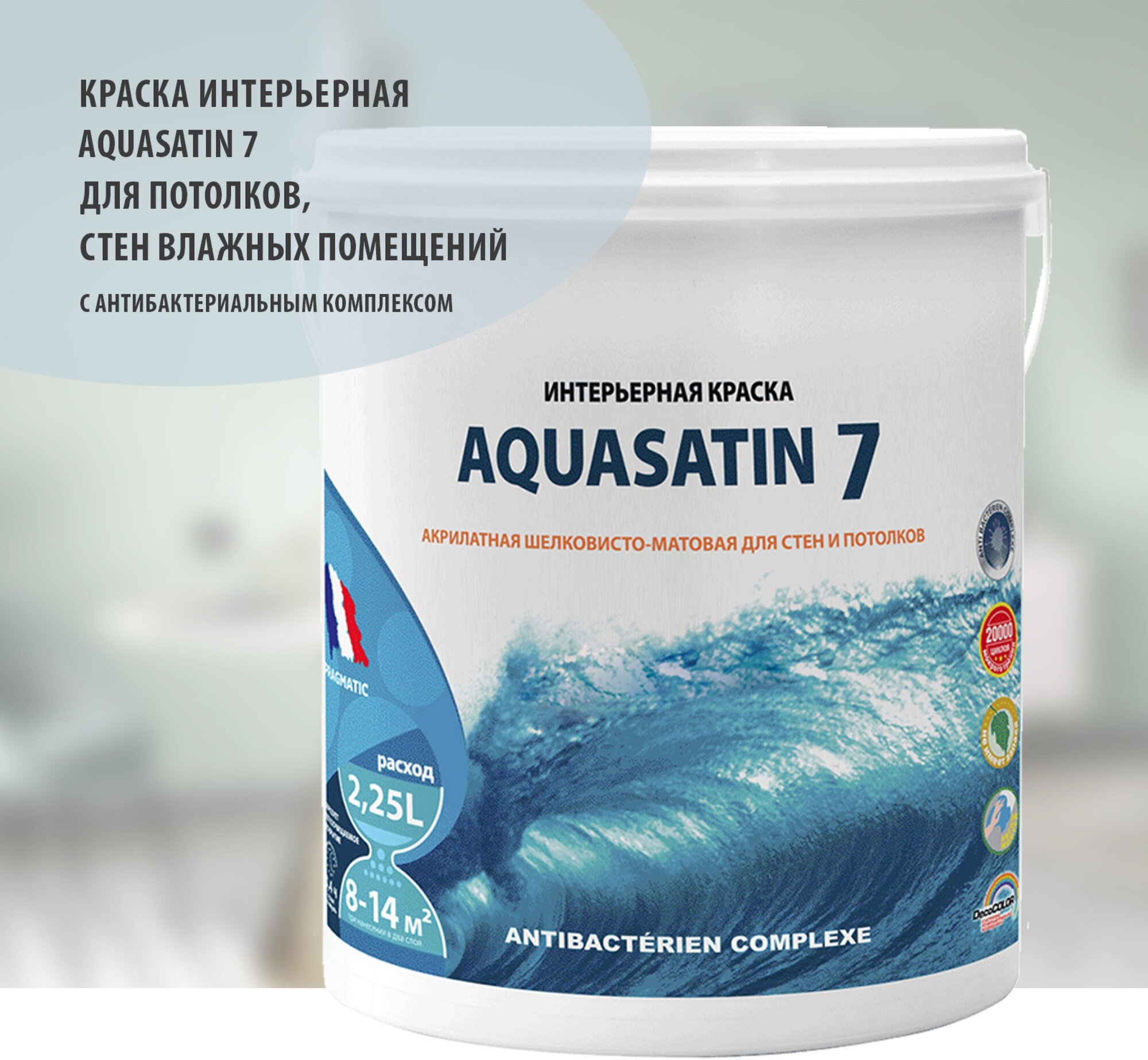 Краска антибактериальная шелковисто-матовая, моющаяся для стен, потолков, кухонь и ванных AQUASATIN 7 ( Аквасатин), 2.25л цвет Белый или под колеровку