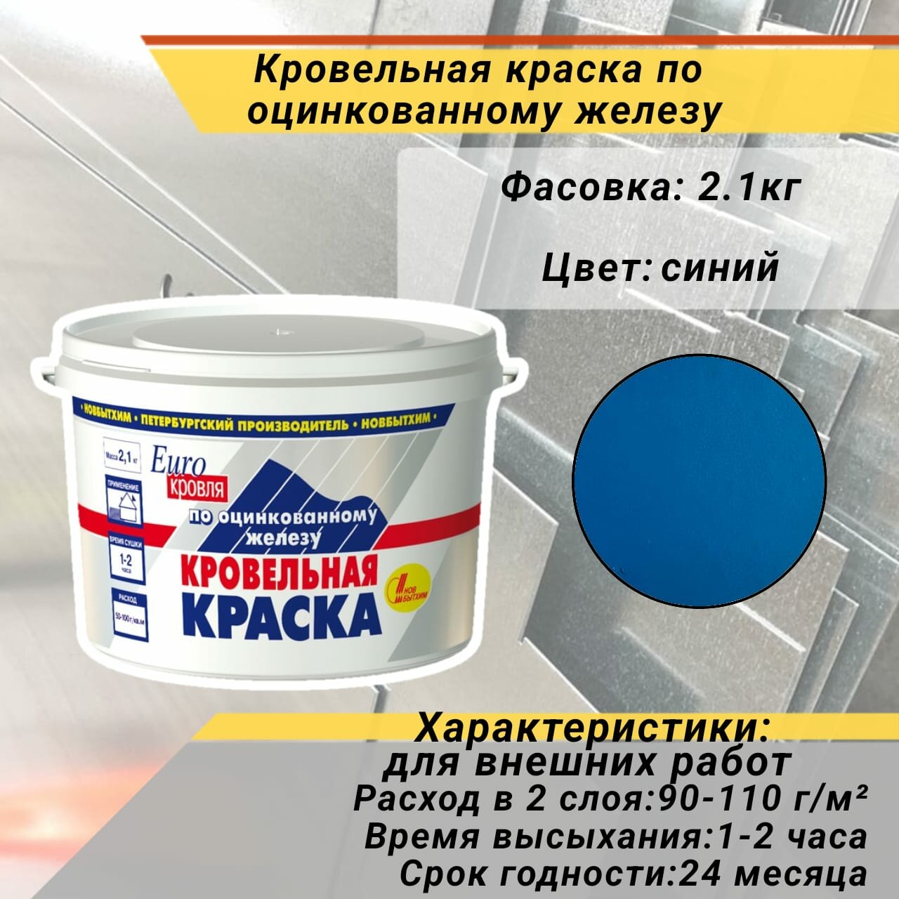 Кровельная краска по оцинковке Новбытхим синяя, 2.1 кг 649 620