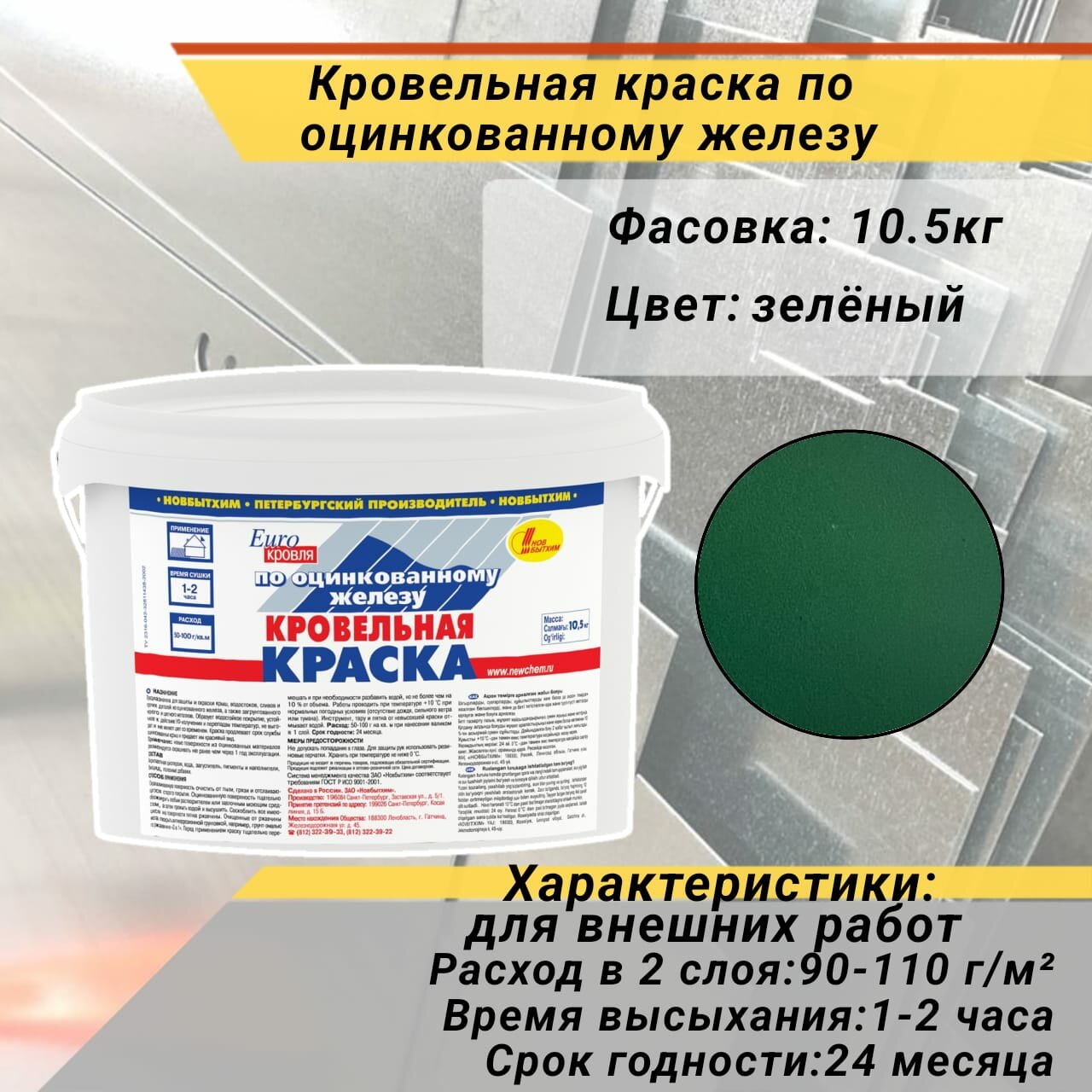 Кровельная краска по оцинковке Новбытхим 463