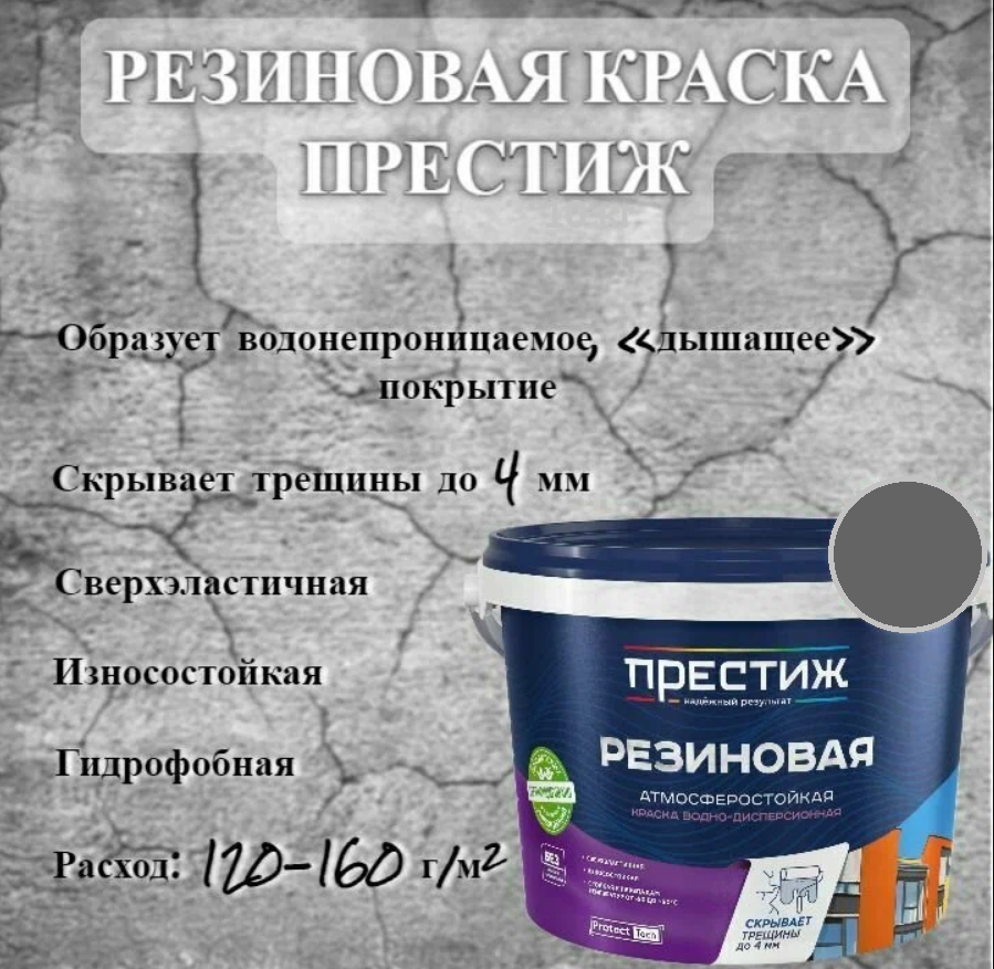 Краска резиновая водно-дисперсионная Престиж, матовая, 1 кг, серая