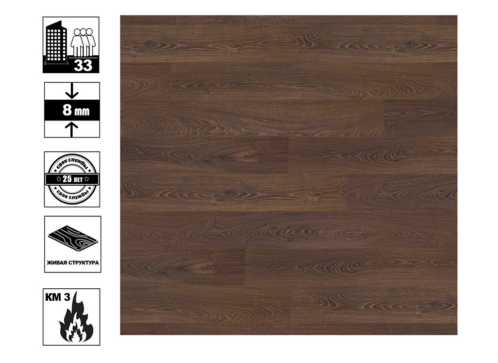 Таркетт Вудсток Фэмили 833 ламинат 33 класс 8мм Дуб шервуд мокко (упак. 2,005 кв.м.) / TARKETT Woodstock 833 ламинат 33 класс 1292х194х8мм Mocha Sherw