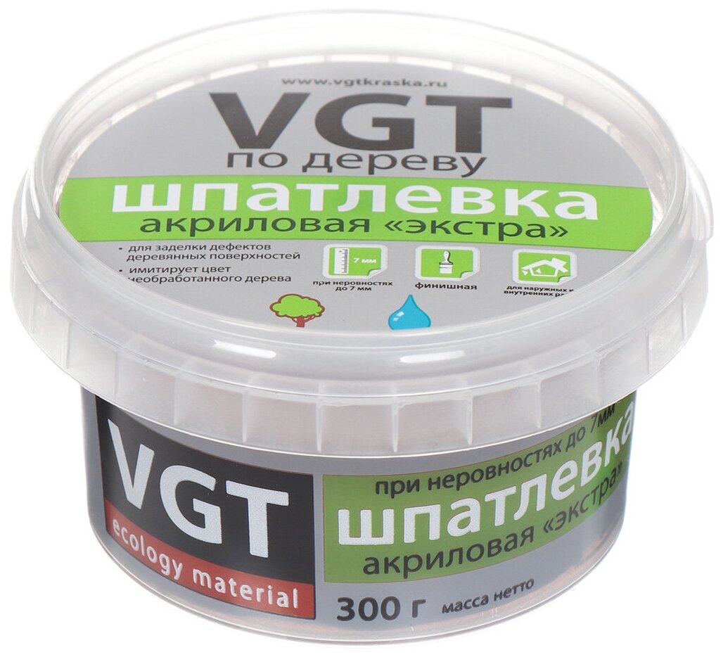 Шпатлевка VGT, Экстра, акриловая, по дереву, береза, 0.3 кг