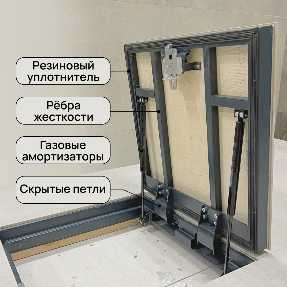 Люк ревизионный под плитку напольный Хаммер Бонд стальной 700х800 мм скрытый с амортизаторами
