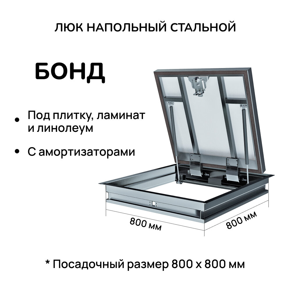 СохранитьЛюк ревизионный под плитку напольный Хаммер Бонд стальной 800х800 мм скрытый с амортизаторами интересное:
