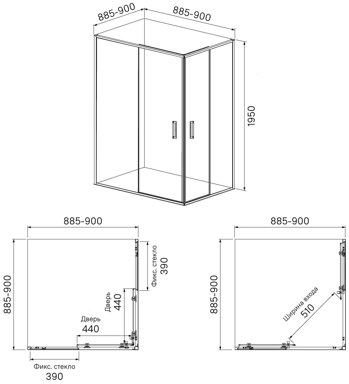 Душевое ограждение IDDIS Zodiac глянцевый алюминиевый профиль 90х90х195 см (ZOD6CS9i23)