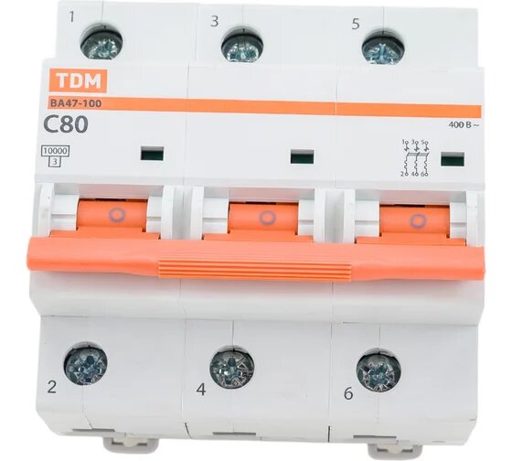 Автоматический выключатель ВА47-100 3Р 80А 10кА х-ка C TDM