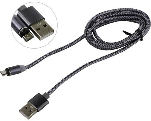 Кабель USB 2.0 - microUSB JETACCESS JA-DC26 1м серый(опл.,USB/microUSB,Magnet,2A)