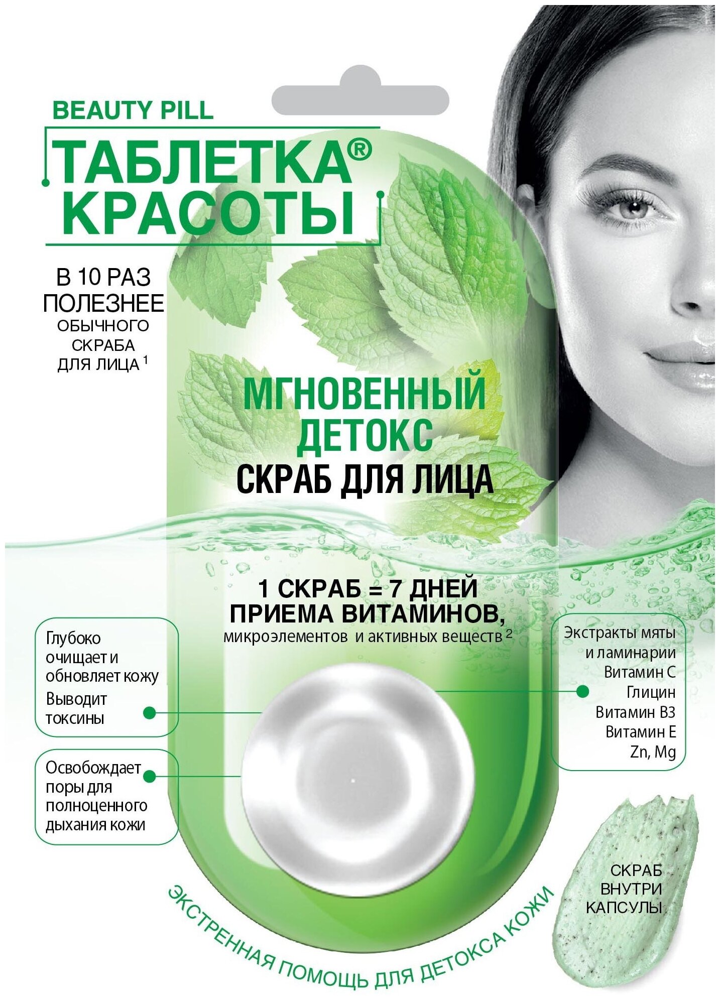 Фитокосметик Таблетка Красоты Скраб для лица Мгновенный детокс, капсула 8 мл