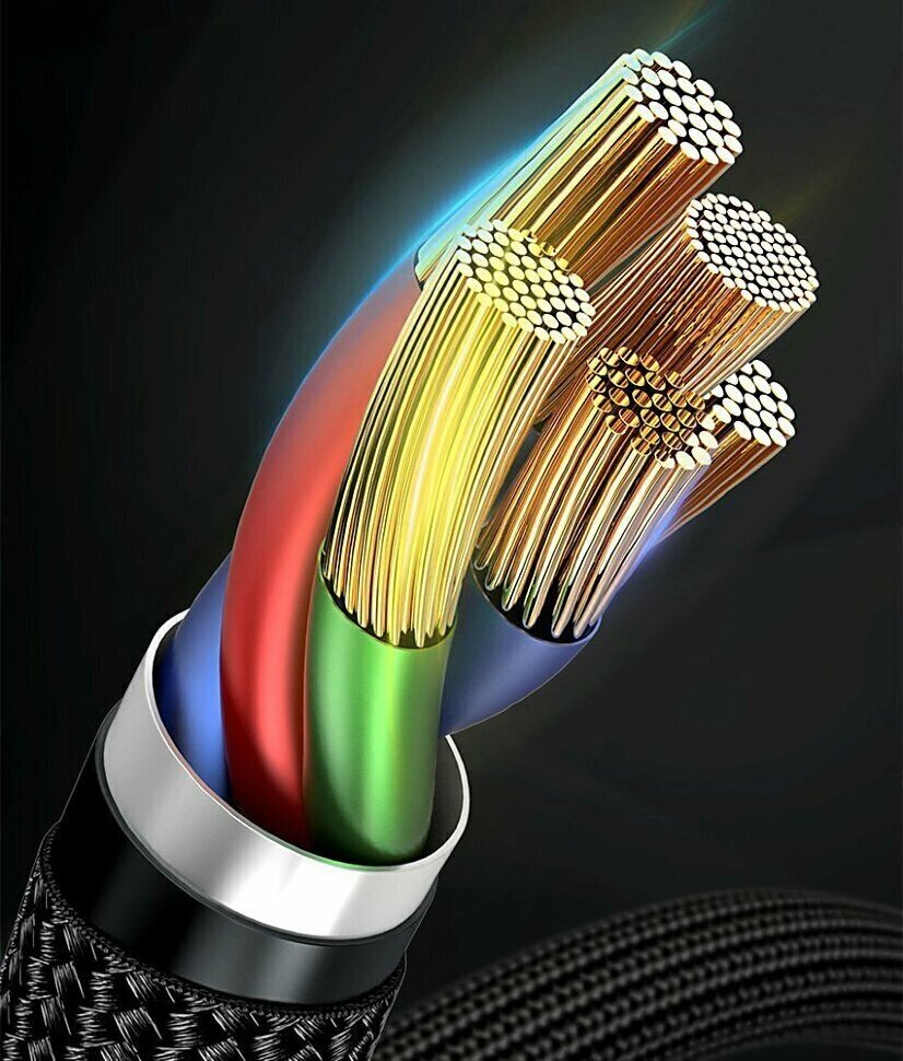 | Плюсы: | Надежная тканная оплётка кабеля, усиленные рубашки коннекторов. |