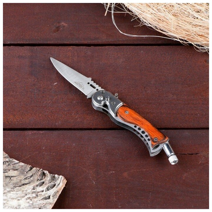 Нож складной автоматический Мастер К, фонарик, рукоять под дерево 214553 .