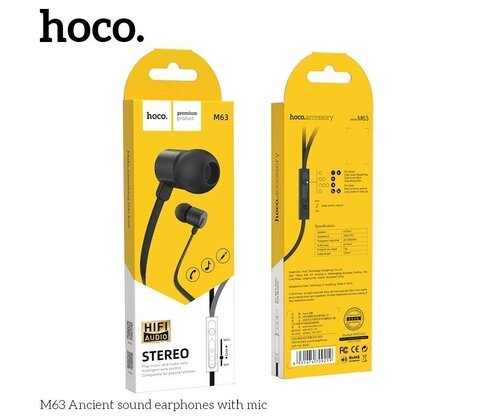 Наушники M63 Ancient sound earphones with mic, HOCO, черные