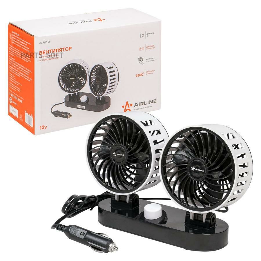 AIRLINE Вентилятор в салон двойной 2х12см 12В пластик (ACF-12-05) 1шт