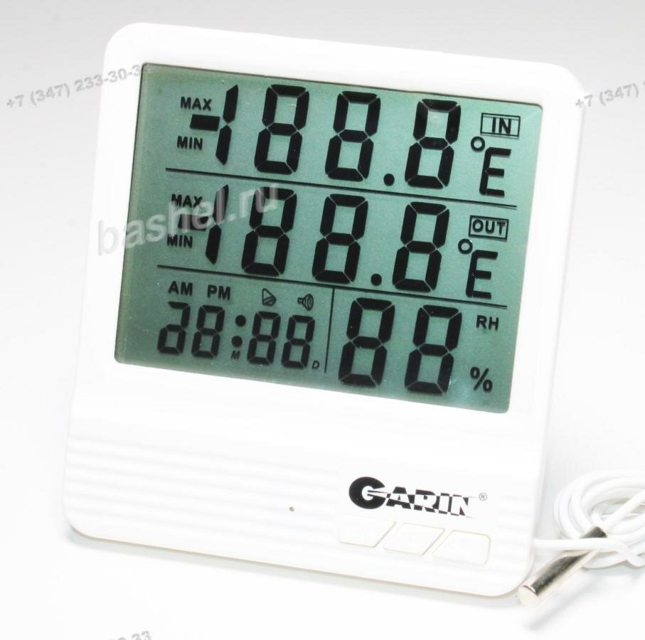 Комнатный термометр(внешняя и внутренняя температура) +гигрометр+часы+календарь с внешним датчиком с проводом 1,5м (питание 1хААА - в комплекте) - WS-4 (Garin) (код заказа 16940 )