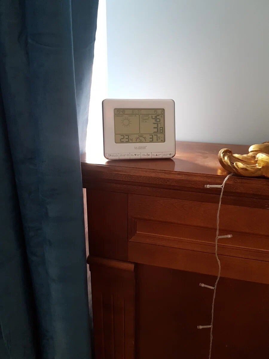 Угол обзора не очень. Перевод неполный. Включил английский, дни недели нормально, а остальное на французском. Upd: прошло ещё 2 часа. Температура 3,2. За окном -1... Upd: на следующее утро показывает 3,9. Ртутный градусник за окном показывает 1 градус. Похоже буду делать возврат... Upd: за время использования показывал 3.9-4 градуса на улице, в то время, как ртутный показывал 1 градус. Решил протестить на холодильнике (сигнал проходит). В морозилке выставлено -15. Закинул датчик, температура показала спустя час -10.1. В самом холодильнике -5. Показал 0 градусов. Что и требовалось доказать. Точность мёртвая. Буду делать возврат |