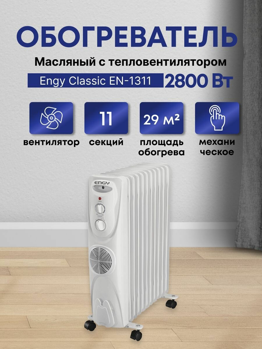 Радиатор масляный Engy Classic EN-1311F с тепловентилятором 11 секций, 2,8 кВт интересное: