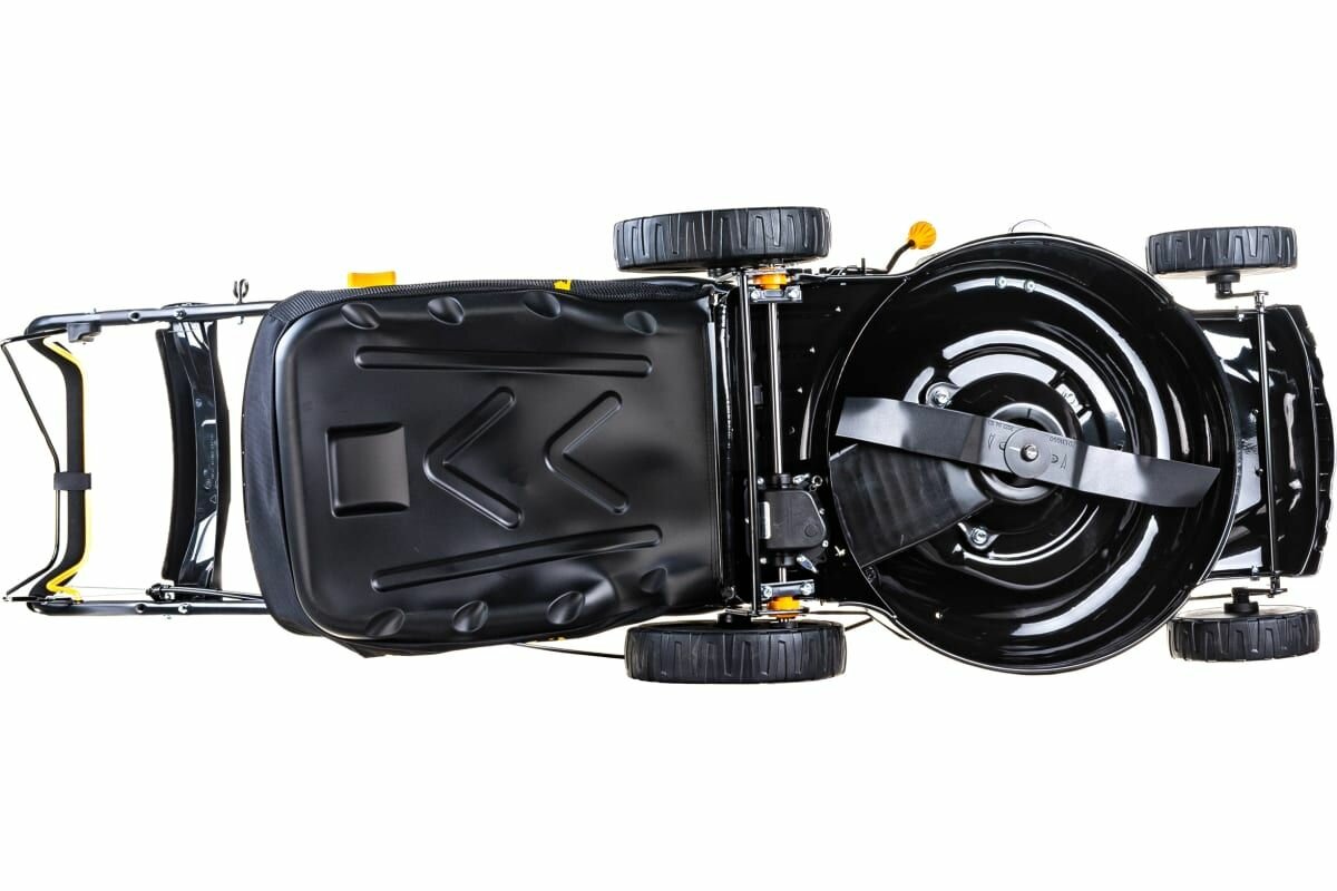 | Плюсы: | мощь 3.5 лошадей, захват 46 см, мульчирует и есть мешок для травы. |