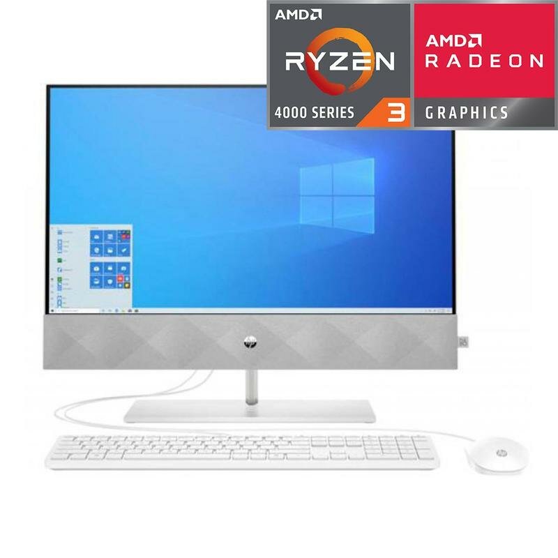 Моноблок HP Pavilion A 24-k0006ur NT 23,8" FHD(1920x1080) AMD Ryzen3-4300U, 4GB DDR4 3200 (1x4GB), SSD 256Gb, AMD Integrated Graphics, no DVD, kbd&mouse wired, 5MP Webcam, White, Win10, 1Y Wty
