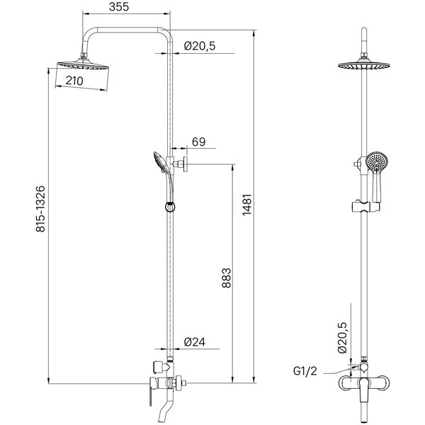 | Высота стойки для душа | 1480 мм |