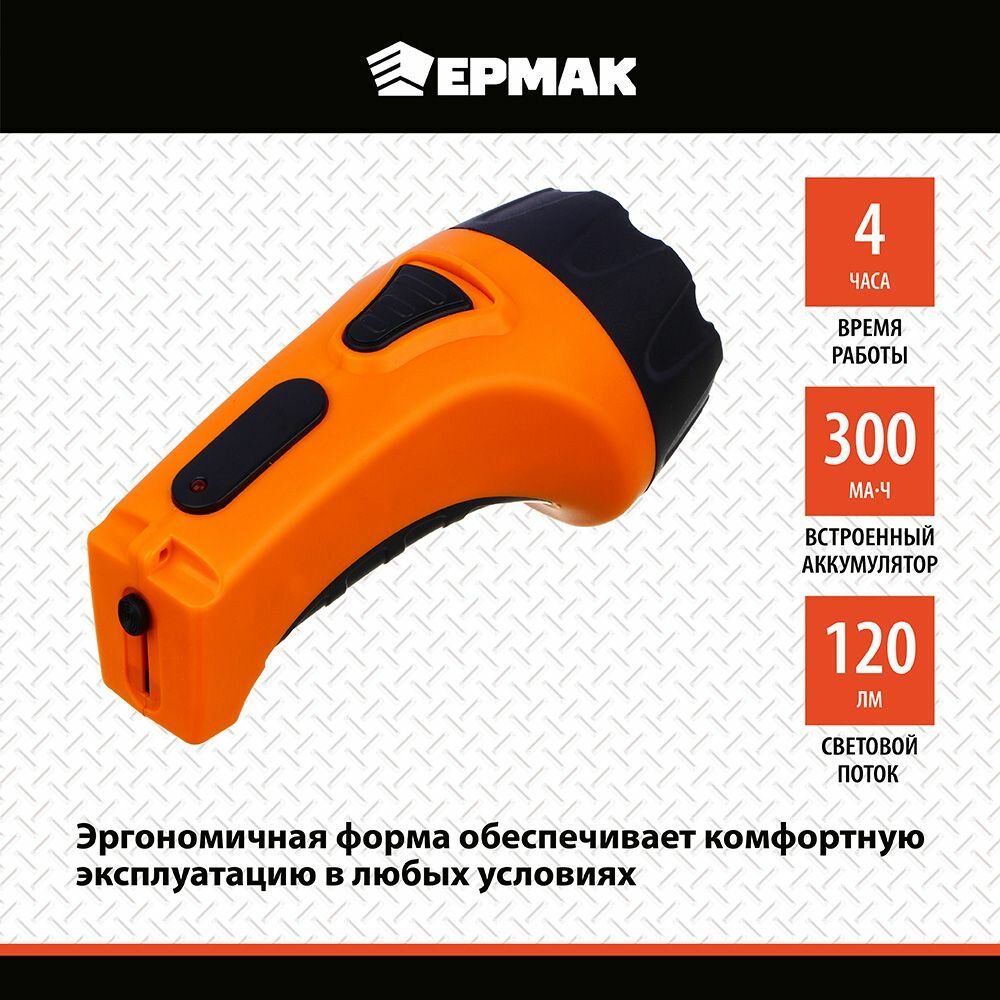 Ермак Фонарь аккумуляторный 4 ярк. LED, вилка 220В, пластик, 13x5,3 см