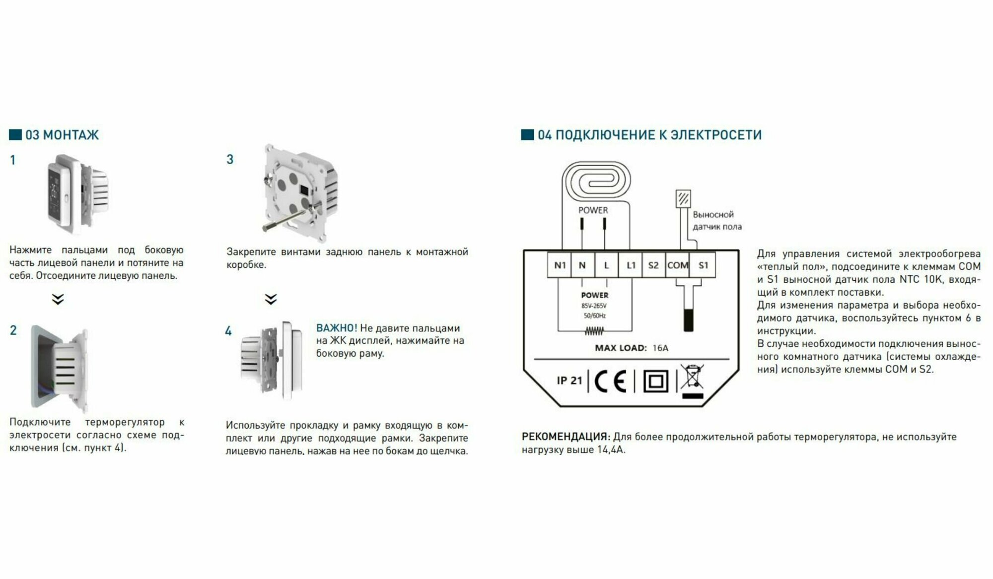 Терморегулятор/термостат IQWATT SMART HEAT с WI-FI до 220Вт Для теплого пола, белый