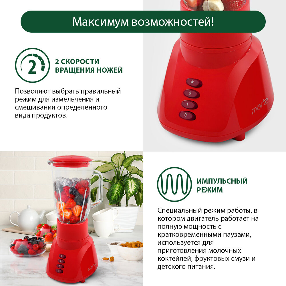 Купить Marta MT-1569 красный рубин блендер стационарный .