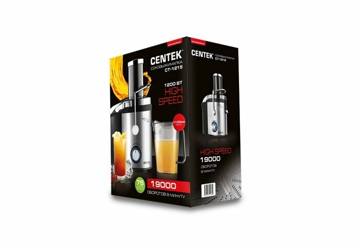 Соковыжималка CENTEK CT-1215, нержавеющая сталь и черный