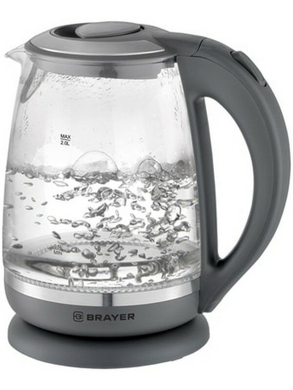 Купить Чайник электрический Brayer 2200 Вт, 2 л, стеклянный, серый (BR1044)
