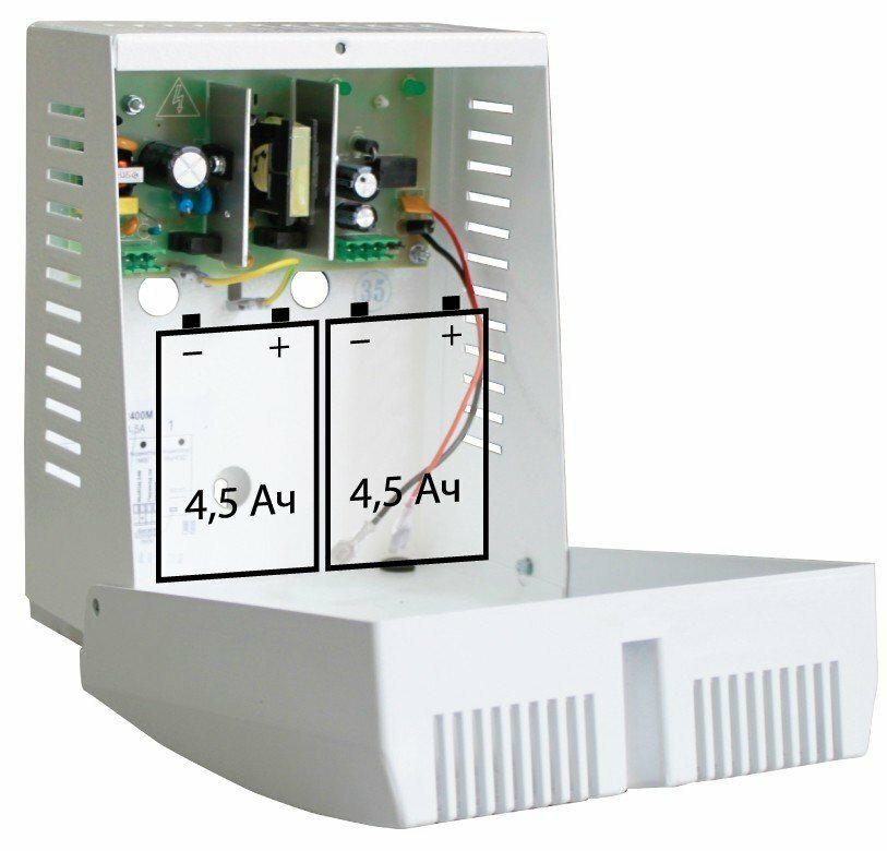 Скат -2400М ИБП-24/1,5-2x4,5 ист. пит. 24В 1,5А корпус под АКБ 2х4,5Ач холодный пуск С 75