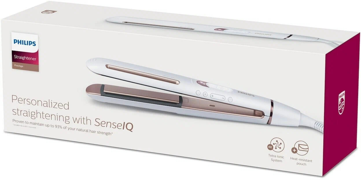 | Дополнительная информация | технология SenseiQ: определяет температуру волос, аестьптирует процесс выпрямления, чтобы избежать перегрева; система Tetra Ionic для сияния волос; термоизолированный футляр |