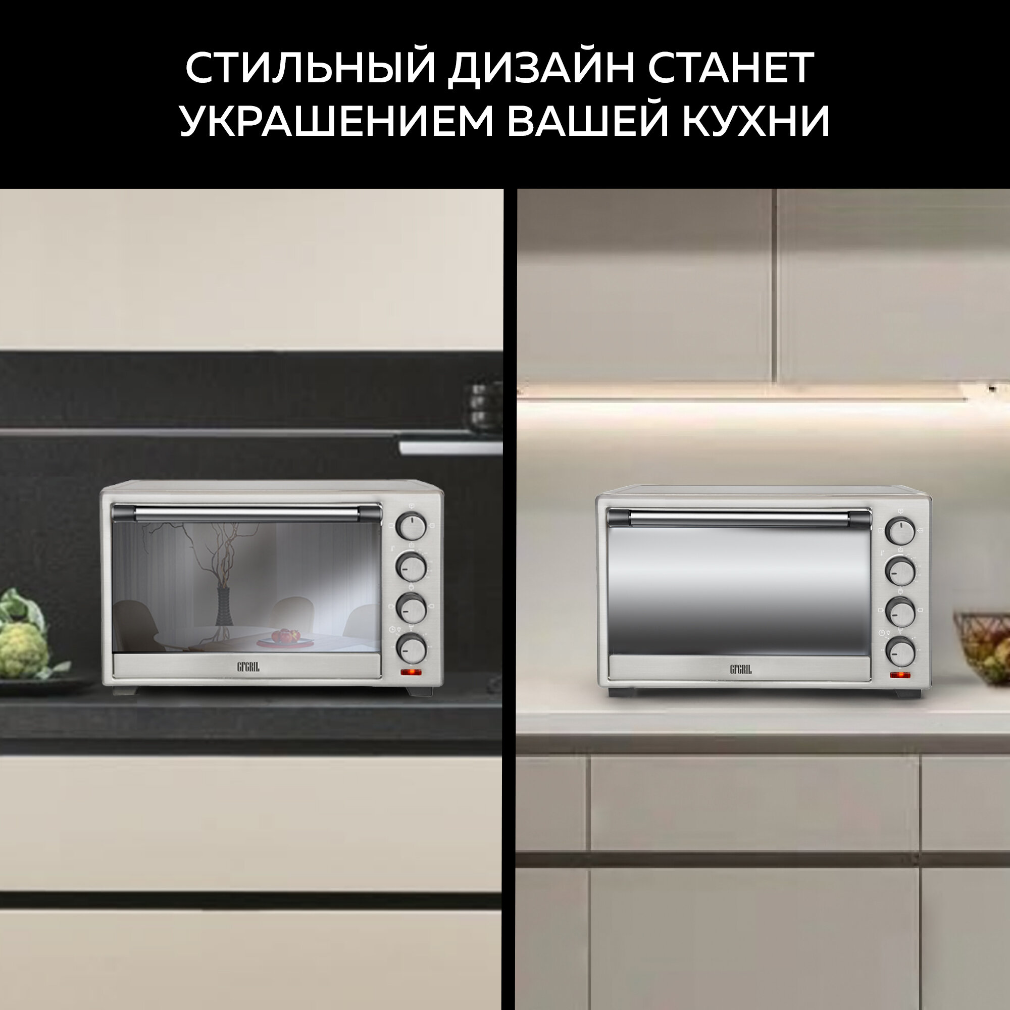 Купить GFGRIL Многофункциональная электрическая мини-печь GFO-39 MIRROR, 38л, духовка из нержавейки, вертел, шашлычница, коврик для выпечки, с конвекцией