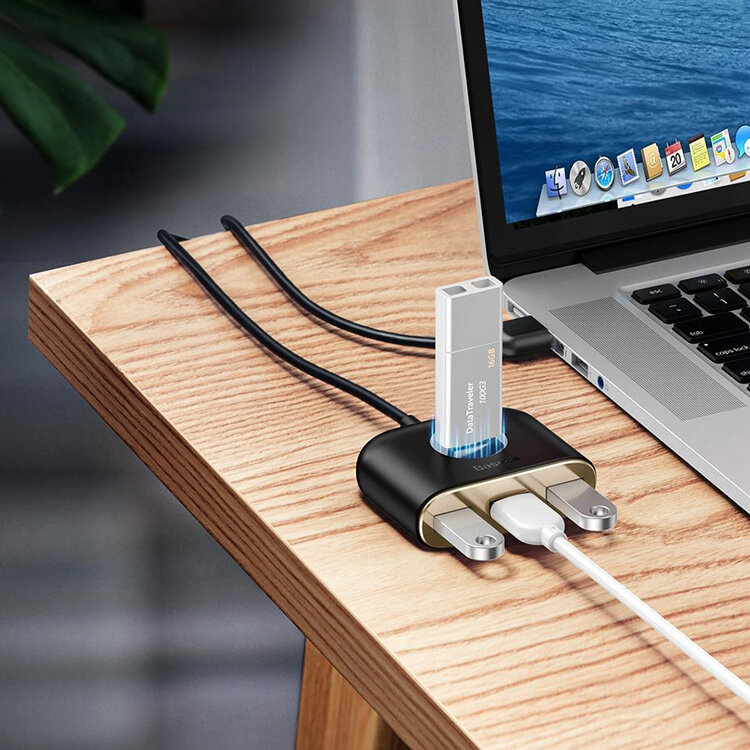 Хаб Baseus Square Round 4 in 1 USB HUB Adapter (Type-C to USB3.0 x 1 + USB2.0 x 3) 0.17m Black (CAHUB-BY01) интересное: